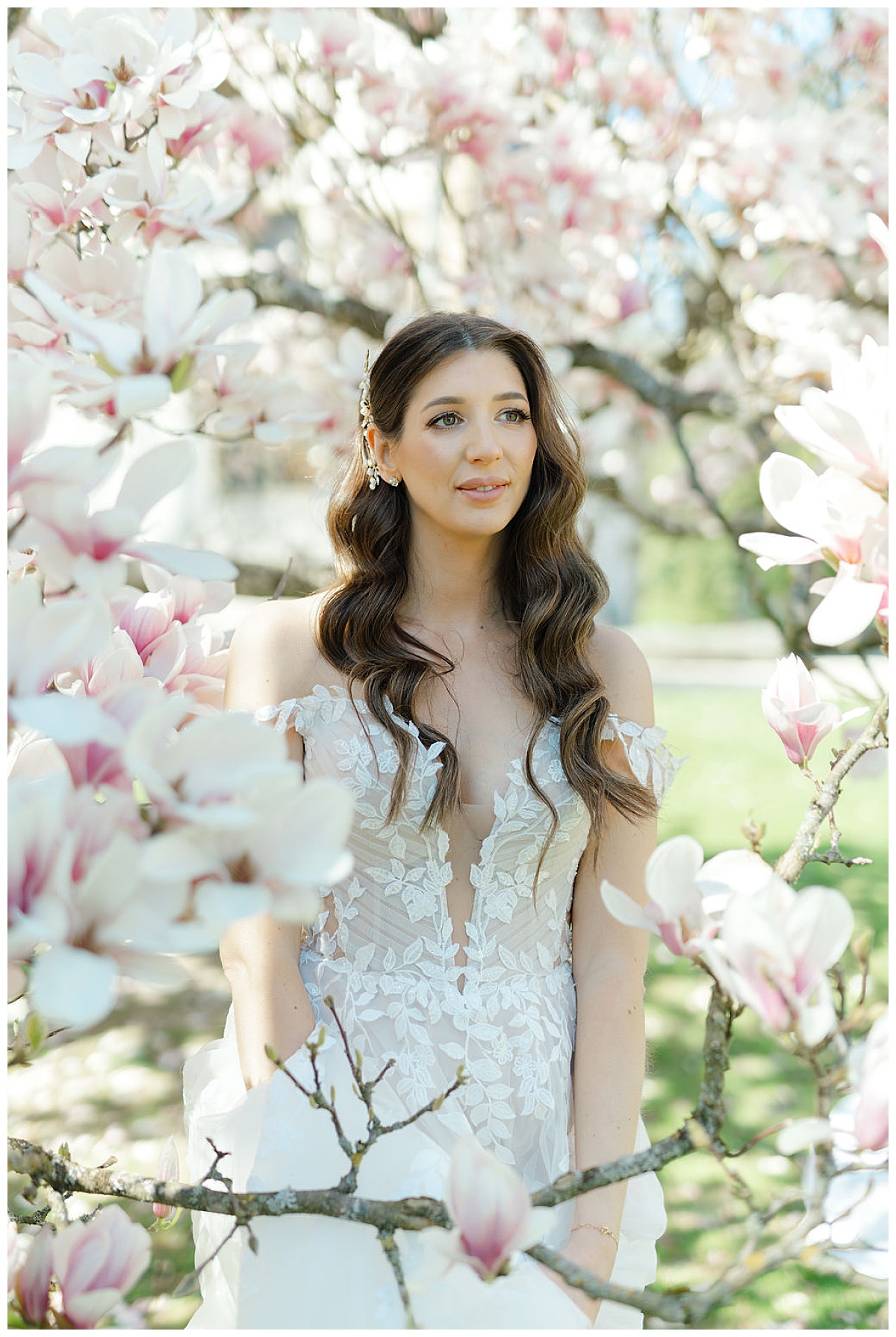 Am Hochzeitstag wurden die Gäste in einen Raum voller üppigem Grün und sanften Pastellblumen begrüßt. Diese natürliche Umgebung, kombiniert mit dezenter Dekoration, schuf eine verzauberte Atmosphäre, die perfekt zu dem passte, was das Paar sich vorgestellt und mit Brousseau Events geplant hatte.