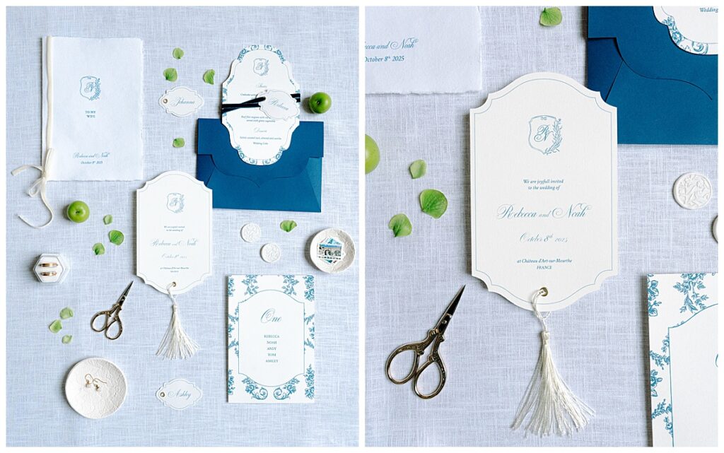 Das Ergebnis war ein modernes Hochzeitsshooting, das mediterrane Lebensfreude mit französischer Eleganz verbindet. Blau-weiße Muster, feine grüne Nuancen und natürliche Früchtelemente schufen eine stilvolle Interpretation der Dolce Vita und eine inspirierende Idee für elegante Sommerhochzeiten.