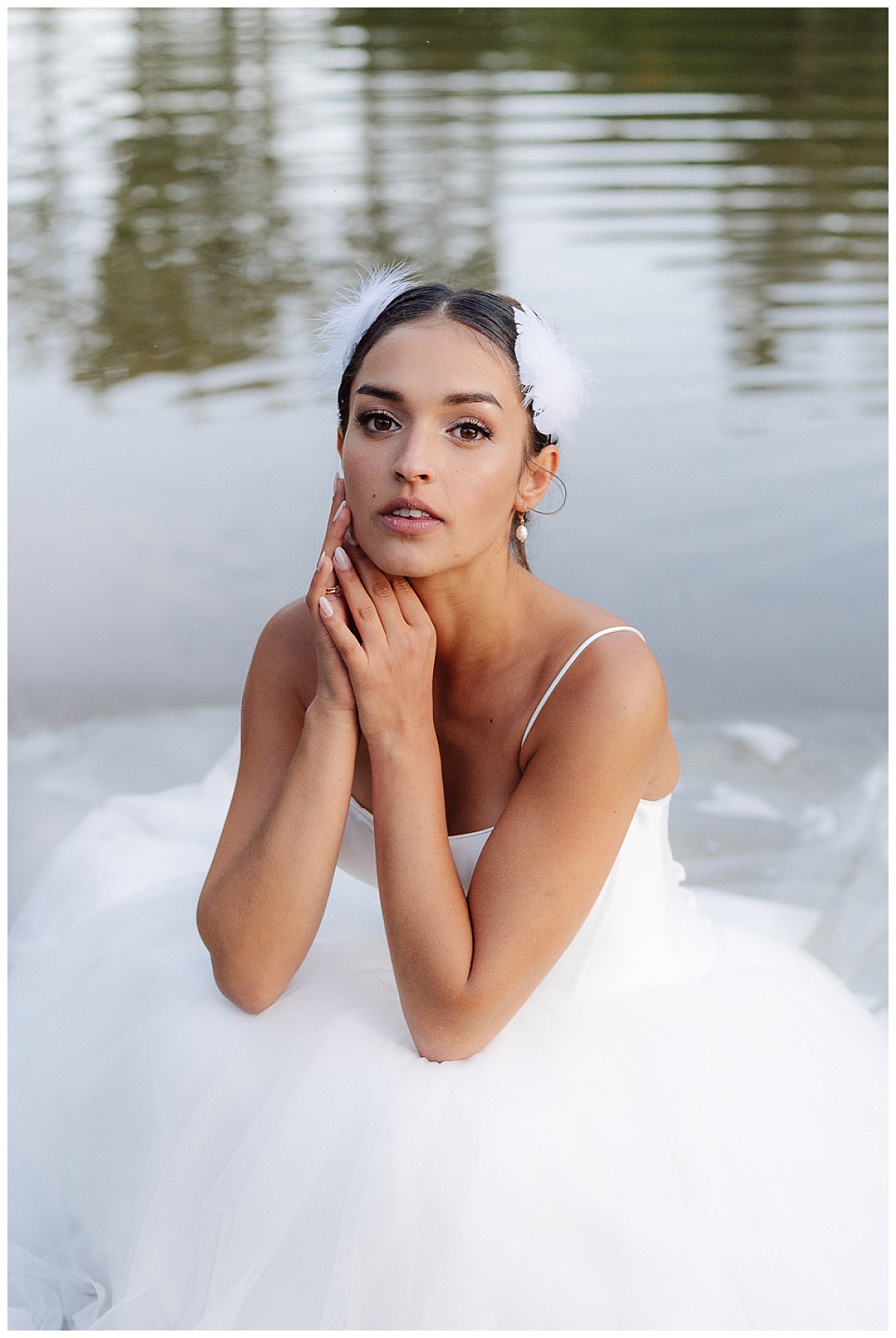 Auf den ersten Blick sind es schlichte Kleider die sich an die Silhouette der Braut schmiegen, auf den Zweiten enthüllen sie ihren Reichtum an Details und Eleganz. Mal locker zur Seite gesteckt, mal offen und leicht gewellt – ihr blondes Haar ergänzt ihr Styling ähnlich raffiniert.
