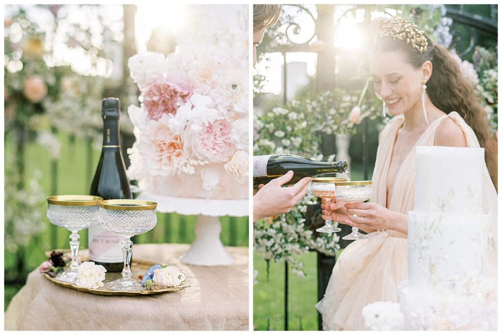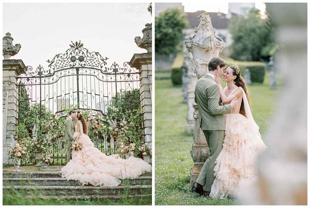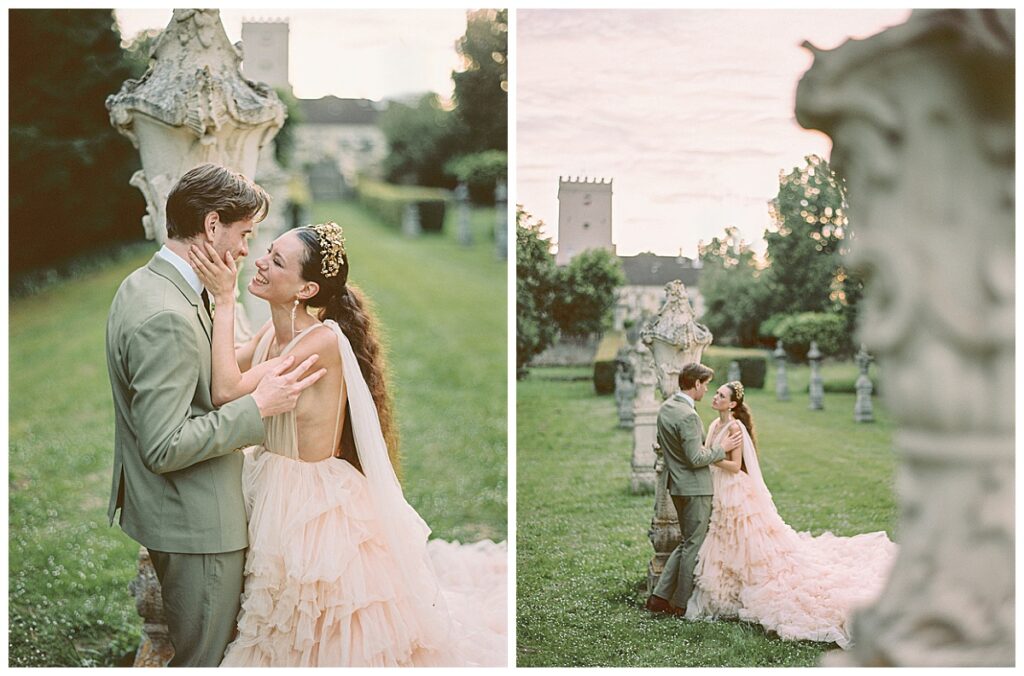 Romantische Schlosshochzeit im Garten in Pastellfarben